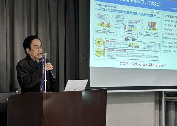 また、第2部には、グローランドコンサルタント代表 永岡弘行様より、『三次市での空き家バンクに関わる空き家の実務事例の紹介』と題してお話をいただきました。困った空き家問題に一歩踏み込むことで、補助金等を活用したリフォーム案件につなげたりされておられるとの現場のナマの事例のお話等、参加者も熱心に聞いておられたのではないかと思います。